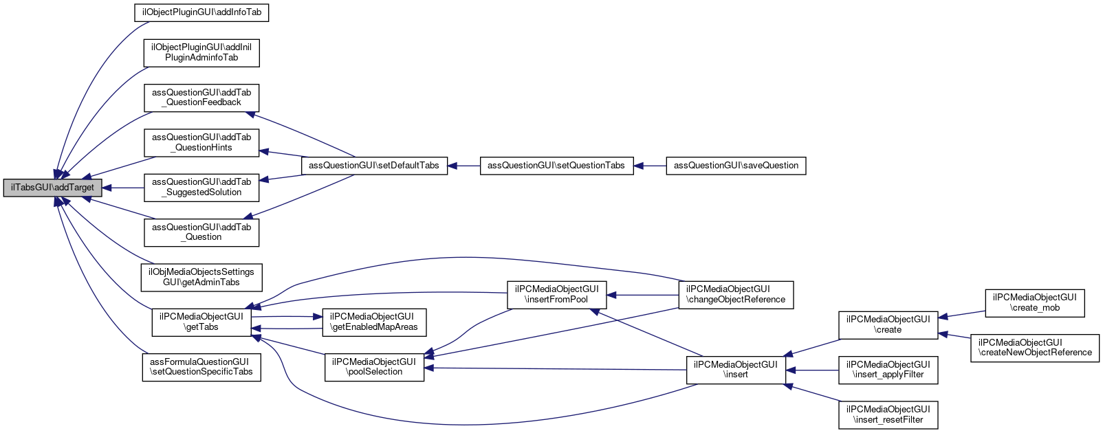 Referenced by ilObjectPluginGUI\addInfoTab(), ilObjectPluginGUI\addInilPluginAdminfoTab(), assQuestionGUI\addTab_Question(), assQuestionGUI\addTab_QuestionFeedback(), assQuestionGUI\addTab_QuestionHints(), assQuestionGUI\addTab_SuggestedSolution(), ilObjMediaObjectsSettingsGUI\getAdminTabs(), ilPCMediaObjectGUI\getTabs(), and assFormulaQuestionGUI\setQuestionSpecificTabs().