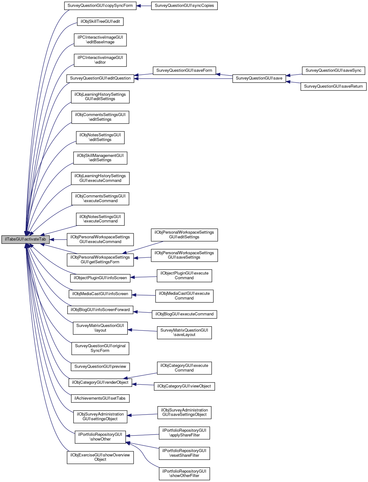 Referenced by SurveyQuestionGUI\copySyncForm(), ilObjSkillTreeGUI\edit(), ilPCInteractiveImageGUI\editBaseImage(), ilPCInteractiveImageGUI\editor(), SurveyQuestionGUI\editQuestion(), ilObjLearningHistorySettingsGUI\editSettings(), ilObjCommentsSettingsGUI\editSettings(), ilObjNotesSettingsGUI\editSettings(), ilObjSkillManagementGUI\editSettings(), ilObjLearningHistorySettingsGUI\executeCommand(), ilObjCommentsSettingsGUI\executeCommand(), ilObjNotesSettingsGUI\executeCommand(), ilObjPersonalWorkspaceSettingsGUI\executeCommand(), ilObjPersonalWorkspaceSettingsGUI\getSettingsForm(), ilObjectPluginGUI\infoScreen(), ilObjMediaCastGUI\infoScreen(), ilObjBlogGUI\infoScreenForward(), SurveyMatrixQuestionGUI\layout(), SurveyQuestionGUI\originalSyncForm(), SurveyQuestionGUI\preview(), ilObjCategoryGUI\renderObject(), ilAchievementsGUI\setTabs(), ilObjSurveyAdministrationGUI\settingsObject(), ilPortfolioRepositoryGUI\showOther(), and ilObjExerciseGUI\showOverviewObject().