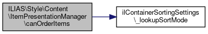 Here is the call graph for this function:| ILIAS\Style\Content\ItemPresentationManager::canOrderItems | ( | ) |