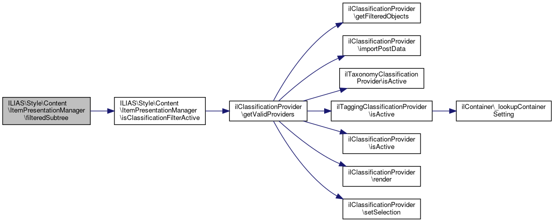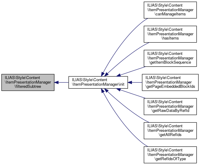 Here is the call graph for this function:| ILIAS\Style\Content\ItemPresentationManager::filteredSubtree | ( | ) |