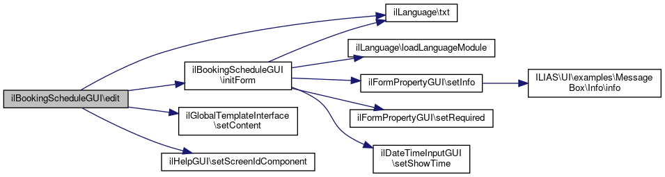 Here is the call graph for this function:| ilBookingScheduleGUI::edit | ( | ) |