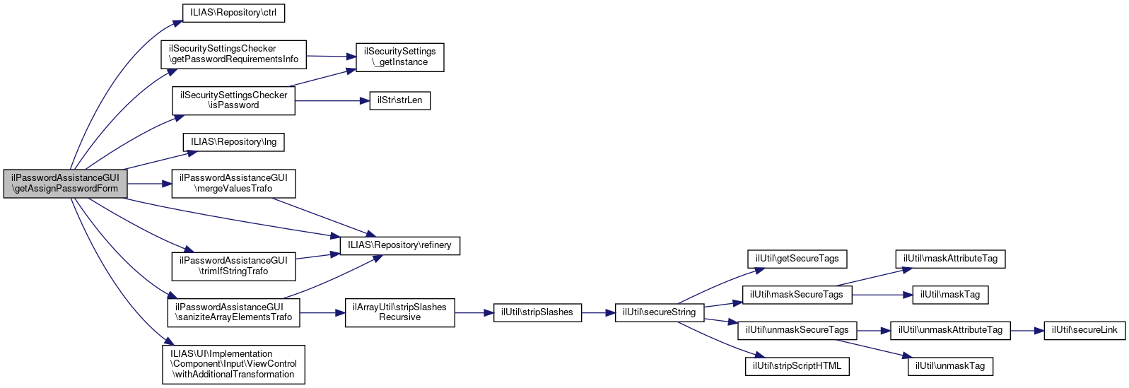 References $lng, ILIAS\Repository\ctrl(), ilSecuritySettingsChecker\getPasswordRequirementsInfo(), ilSecuritySettingsChecker\isPassword(), ILIAS\Repository\lng(), mergeValuesTrafo(), ILIAS\Repository\refinery(), saniziteArrayElementsTrafo(), trimIfStringTrafo(), and ILIAS\UI\Implementation\Component\Input\ViewControl\withAdditionalTransformation().