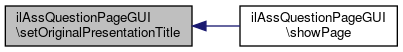 Here is the call graph for this function:| ilAssQuestionPageGUI::getOriginalPresentationTitle | ( | ) |