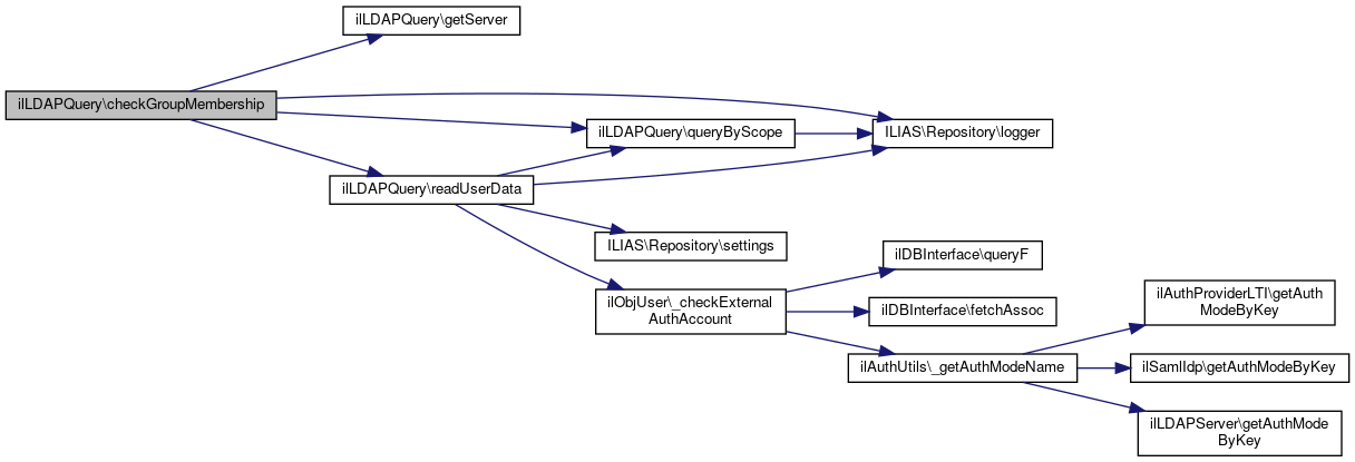 Here is the call graph for this function:| ilLDAPQuery::checkGroupMembership | ( | string | $a_ldap_user_name, |