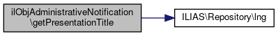 Here is the call graph for this function:| ilObjAdministrativeNotification::getPresentationTitle | ( | ) |