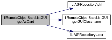 Here is the call graph for this function:| ilRemoteObjectBaseListGUI::getAsCard | ( | int | $ref_id, |