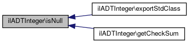 Here is the call graph for this function:| ilADTInteger::isNull | ( | ) |