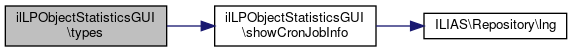 Here is the call graph for this function:| ilLPObjectStatisticsGUI::types | ( | bool | $a_load_data = true | ) |