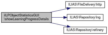 Here is the call graph for this function:| ilLPObjectStatisticsGUI::showLearningProgressDetails | ( | ) |