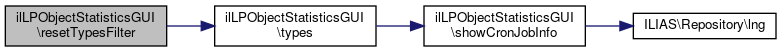 Here is the call graph for this function:| ilLPObjectStatisticsGUI::resetTypesFilter | ( | ) |