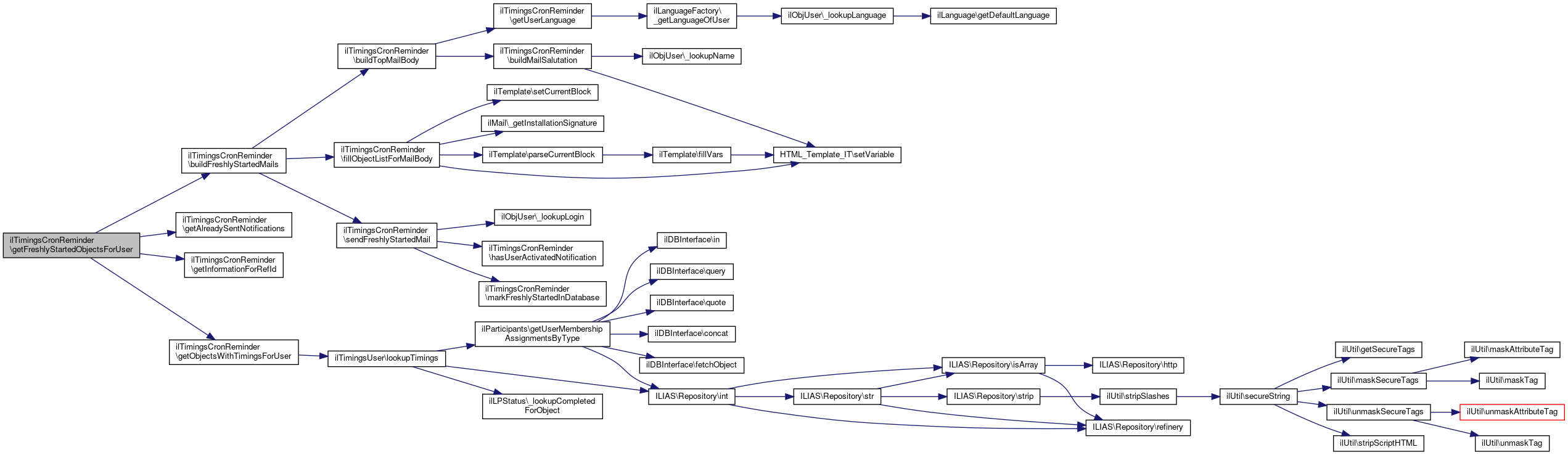 References $ref_id, $user_id, buildFreshlyStartedMails(), getAlreadySentNotifications(), getInformationForRefId(), and getObjectsWithTimingsForUser().