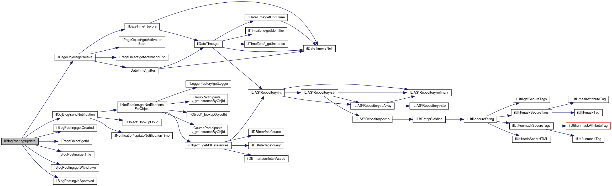 Here is the call graph for this function:| ilBlogPosting::update | ( | bool | $a_validate = true,  |