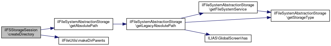 Here is the call graph for this function:| ilFSStorageSession::createDirectory | ( | ) |