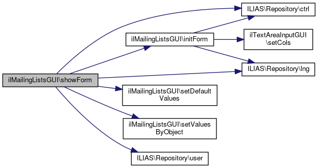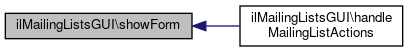 Here is the caller graph for this function:| ilMailingListsGUI::showForm | ( | ) |
