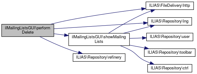 Here is the caller graph for this function:| ilMailingListsGUI::performDelete | ( | ) |