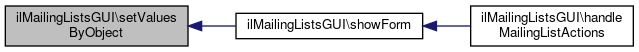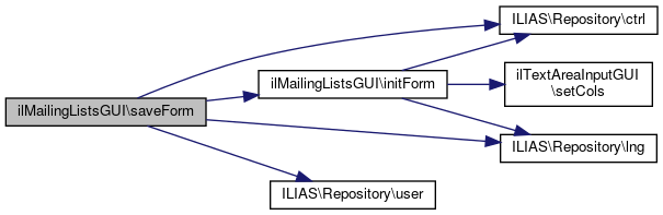 Here is the call graph for this function:| ilMailingListsGUI::saveForm | ( | ) |