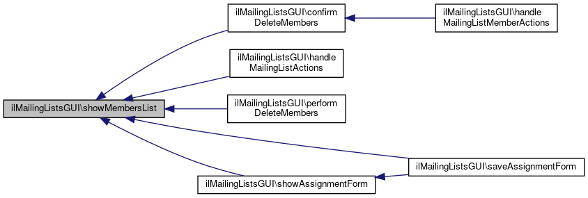 Here is the caller graph for this function:| ilMailingListsGUI::showMembersList | ( | ) |
