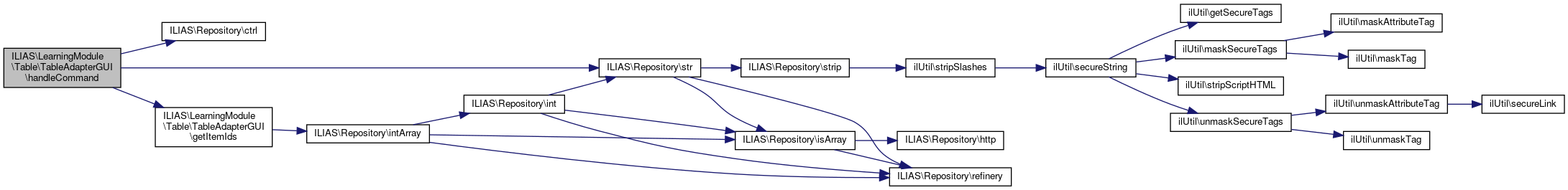 Here is the caller graph for this function:| ILIAS\LearningModule\Table\TableAdapterGUI::handleCommand | ( | ) |