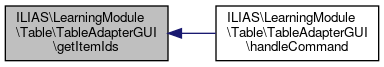 Here is the call graph for this function:| ILIAS\LearningModule\Table\TableAdapterGUI::getItemIds | ( | ) |