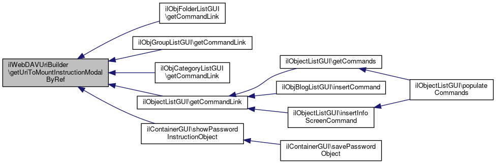 Here is the call graph for this function:| ilWebDAVUriBuilder::getUriToMountInstructionModalByRef | ( | int | $a_ref_id | ) |