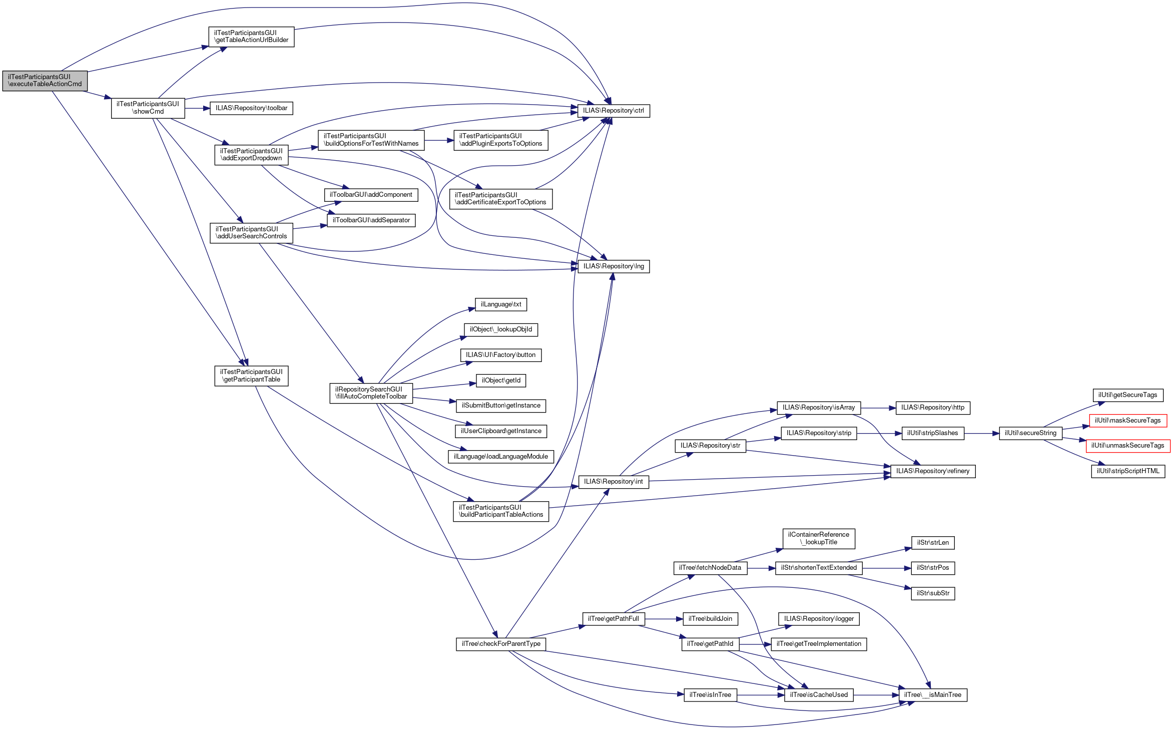 Here is the call graph for this function:| ilTestParticipantsGUI::executeTableActionCmd | ( | ) |