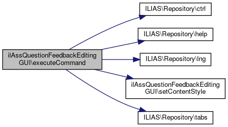 Here is the call graph for this function:| ilAssQuestionFeedbackEditingGUI::executeCommand | ( | ) |