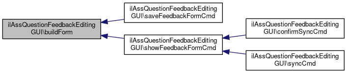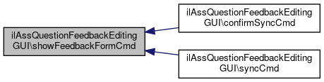 Here is the caller graph for this function:| ilAssQuestionFeedbackEditingGUI::confirmSyncCmd | ( | ) |