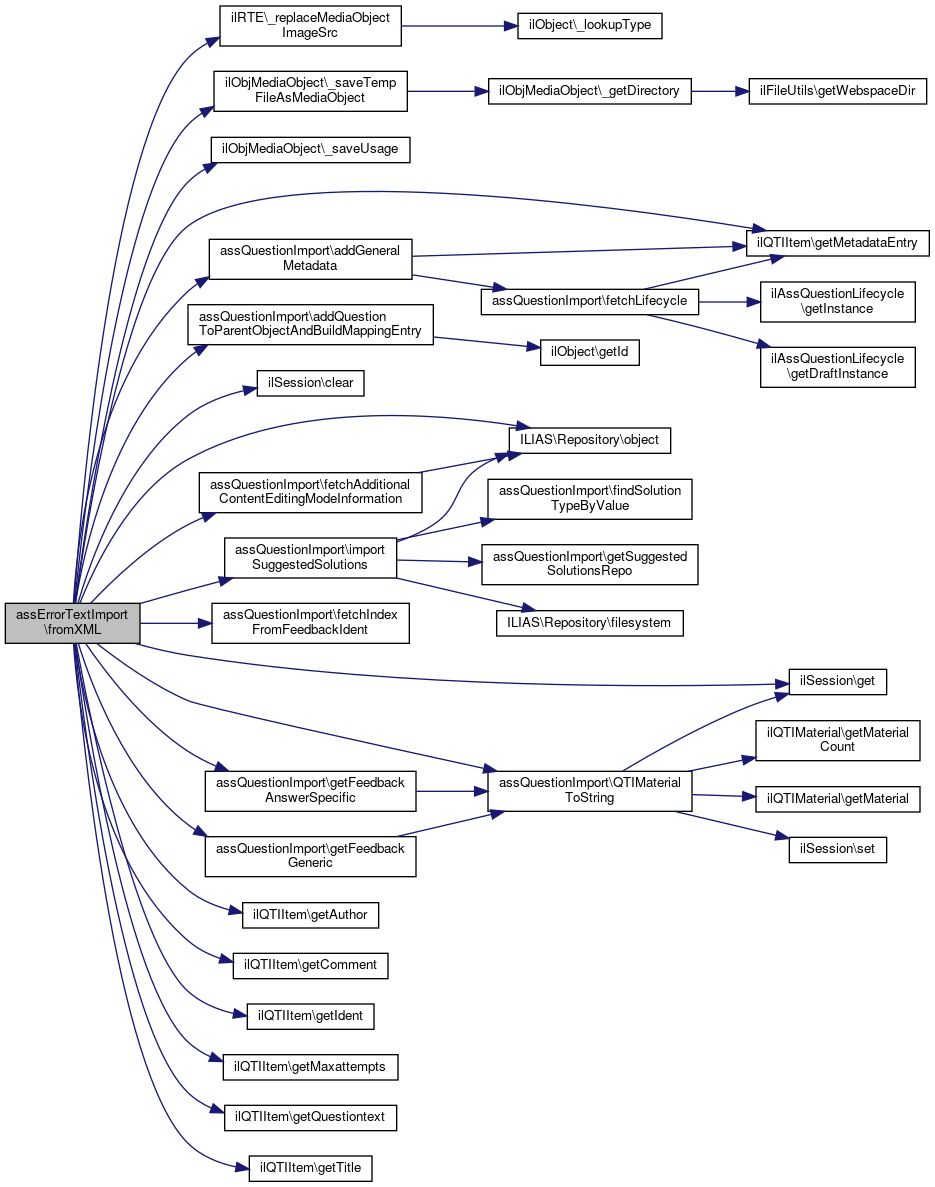 References $data, $DIC, ilRTE\_replaceMediaObjectImageSrc(), ilObjMediaObject\_saveTempFileAsMediaObject(), ilObjMediaObject\_saveUsage(), assQuestionImport\addGeneralMetadata(), assQuestionImport\addQuestionToParentObjectAndBuildMappingEntry(), ilSession\clear(), assQuestionImport\fetchAdditionalContentEditingModeInformation(), assQuestionImport\fetchIndexFromFeedbackIdent(), ilSession\get(), ilQTIItem\getAuthor(), ilQTIItem\getComment(), assQuestionImport\getFeedbackAnswerSpecific(), assQuestionImport\getFeedbackGeneric(), ilQTIItem\getIdent(), ilQTIItem\getMaxattempts(), ilQTIItem\getMetadataEntry(), ilQTIItem\getQuestiontext(), ilQTIItem\getTitle(), IL_INST_ID, assQuestionImport\importSuggestedSolutions(), ILIAS\Repository\object(), and assQuestionImport\QTIMaterialToString().