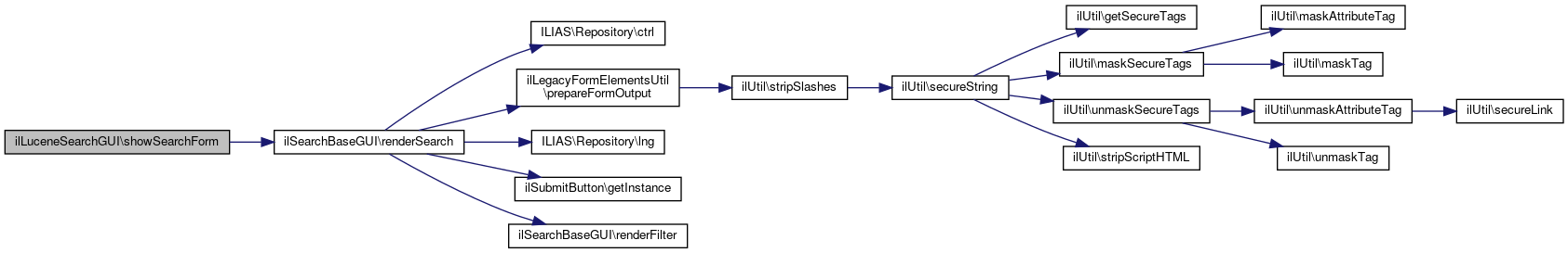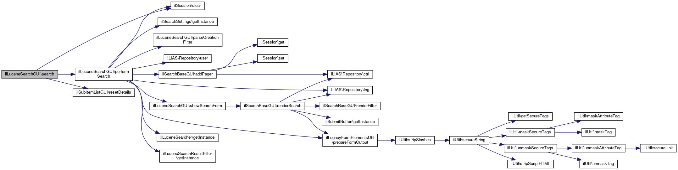References ilSearchBaseGUI\addPager(), ilLuceneSearcher\getInstance(), ilLuceneSearchResultFilter\getInstance(), ILIAS\Repository\lng(), ilLuceneQueryParser\parse(), ilLegacyFormElementsUtil\prepareFormOutput(), showSearchForm(), and ILIAS\Repository\user().