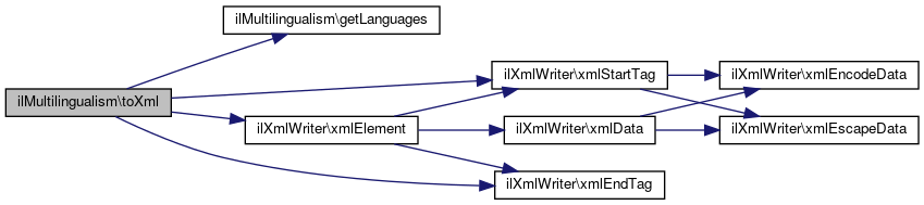 Here is the caller graph for this function:| ilMultilingualism::toXml | ( | ilXmlWriter | $writer | ) |