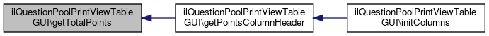 Here is the call graph for this function:| ilQuestionPoolPrintViewTableGUI::getTotalPoints | ( | ) |