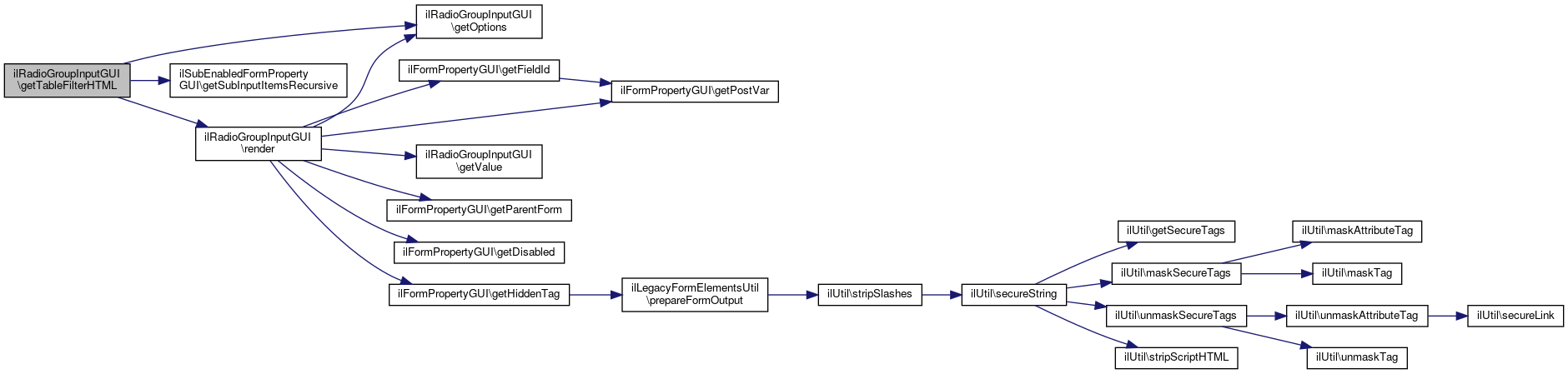 Here is the caller graph for this function:| ilRadioGroupInputGUI::getTableFilterHTML | ( | ) |