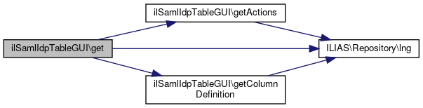 Here is the call graph for this function:| ilSamlIdpTableGUI::get | ( | ) |