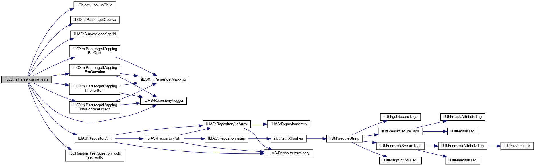 References getMapping(), ILIAS\Repository\logger(), parseMaterials(), parseTests(), and parseXmlErrors().