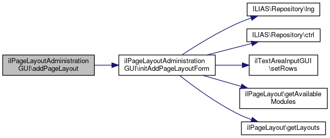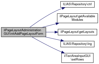 Here is the call graph for this function:| ilPageLayoutAdministrationGUI::initAddPageLayoutForm | ( | ) |