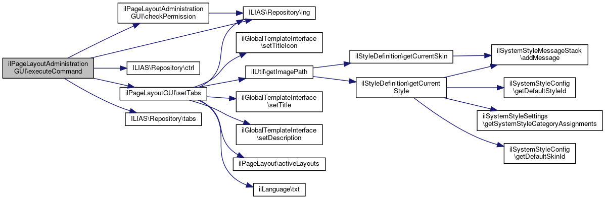 Here is the call graph for this function:| ilPageLayoutAdministrationGUI::executeCommand | ( | ) |