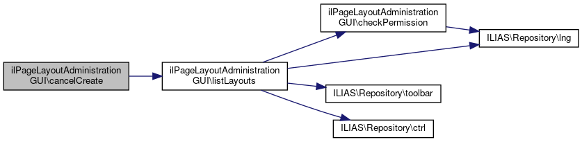 Here is the caller graph for this function:| ilPageLayoutAdministrationGUI::cancelCreate | ( | ) |