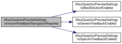 Here is the call graph for this function:| ilAssQuestionPreviewSettings::isInstantFeedbackNavigationRequired | ( | ) |