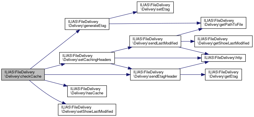 Here is the call graph for this function:| ILIAS\FileDelivery\Delivery::checkCache | ( | ) |