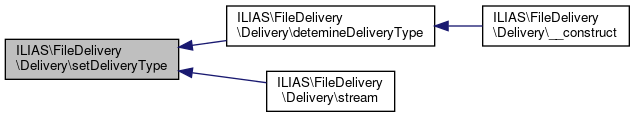 Here is the caller graph for this function:| ILIAS\FileDelivery\Delivery::setDeliveryType | ( | string | $delivery_type | ) |