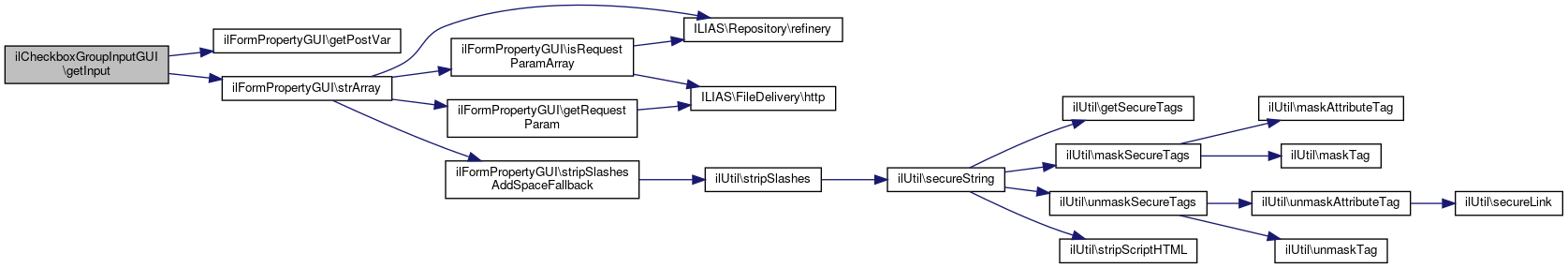 Here is the call graph for this function:| ilCheckboxGroupInputGUI::getInput | ( | ) |