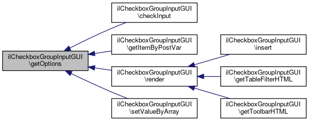 Here is the call graph for this function:| ilCheckboxGroupInputGUI::getOptions | ( | ) |