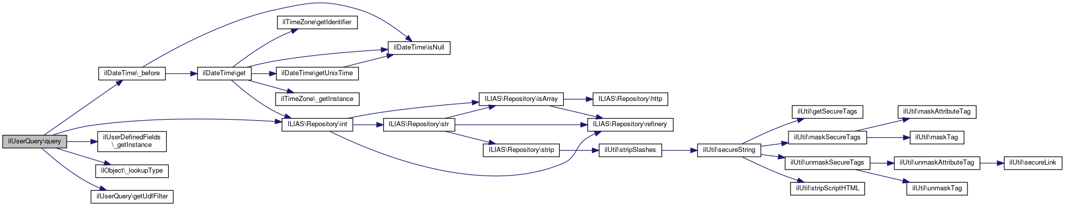 Here is the caller graph for this function:| ilUserQuery::query | ( | ) |