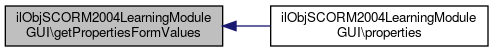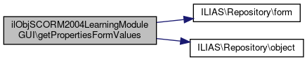 Here is the call graph for this function:| ilObjSCORM2004LearningModuleGUI::getPropertiesFormValues | ( | ) |
