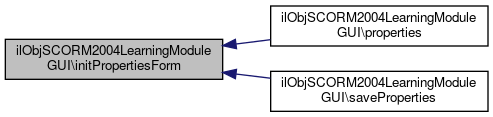 Here is the caller graph for this function:| ilObjSCORM2004LearningModuleGUI::initPropertiesForm | ( | ) |