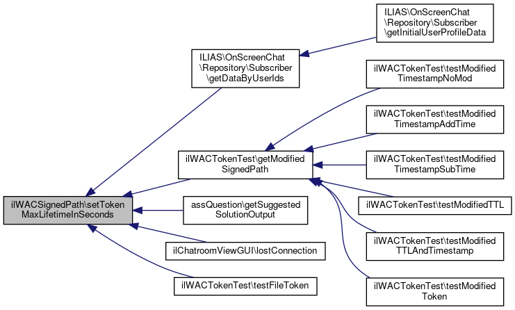 Here is the caller graph for this function:| ilWACSignedPath::setTokenInstance | ( | ilWACToken | $token_instance | ) |