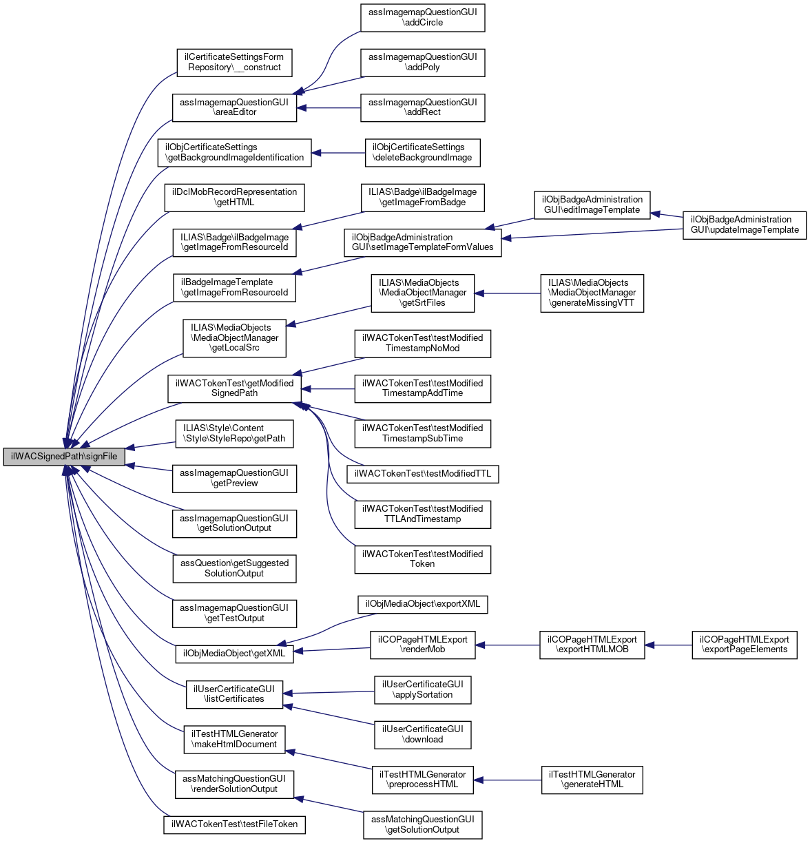 Referenced by ilCertificateSettingsFormRepository\__construct(), assImagemapQuestionGUI\areaEditor(), ilObjCertificateSettings\getBackgroundImageIdentification(), ilDclMobRecordRepresentation\getHTML(), ILIAS\Badge\ilBadgeImage\getImageFromResourceId(), ilBadgeImageTemplate\getImageFromResourceId(), ILIAS\MediaObjects\MediaObjectManager\getLocalSrc(), ilWACTokenTest\getModifiedSignedPath(), ILIAS\Style\Content\Style\StyleRepo\getPath(), assImagemapQuestionGUI\getPreview(), assImagemapQuestionGUI\getSolutionOutput(), assQuestion\getSuggestedSolutionOutput(), assImagemapQuestionGUI\getTestOutput(), ilObjMediaObject\getXML(), ilUserCertificateGUI\listCertificates(), ilTestHTMLGenerator\makeHtmlDocument(), assMatchingQuestionGUI\renderSolutionOutput(), and ilWACTokenTest\testFileToken().