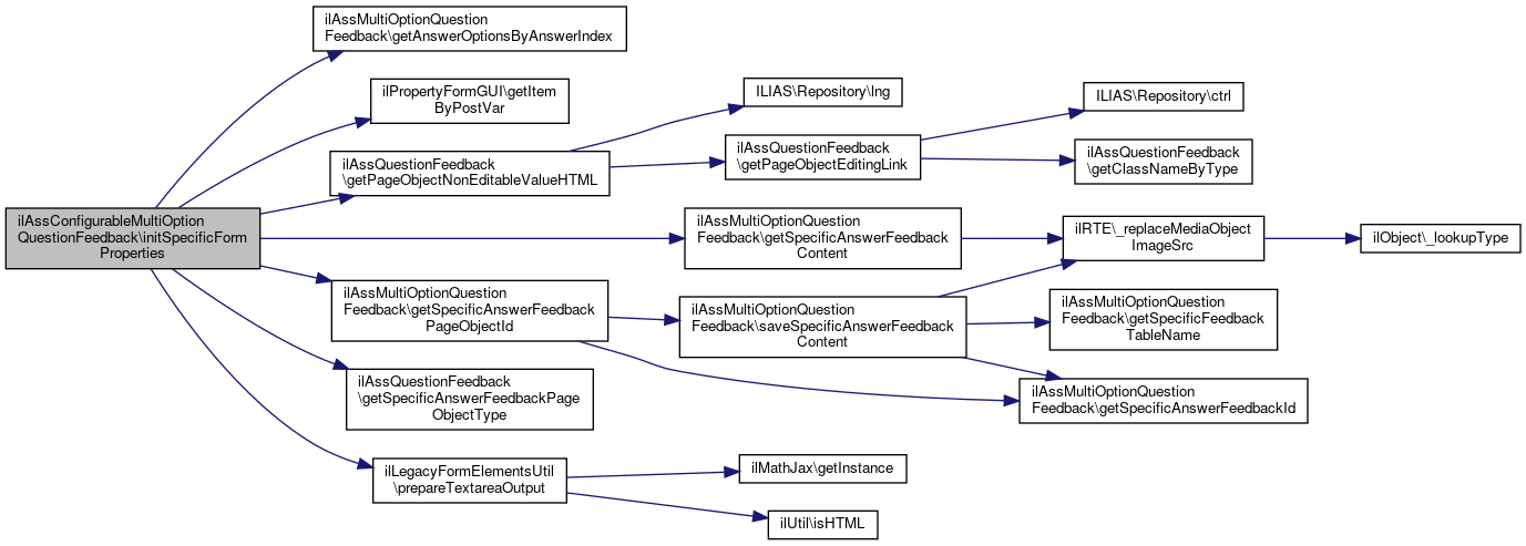 References ilAssMultiOptionQuestionFeedback\getAnswerOptionsByAnswerIndex(), ilPropertyFormGUI\getItemByPostVar(), ilAssQuestionFeedback\getPageObjectNonEditableValueHTML(), ilAssMultiOptionQuestionFeedback\getSpecificAnswerFeedbackContent(), ilAssMultiOptionQuestionFeedback\getSpecificAnswerFeedbackPageObjectId(), ilAssQuestionFeedback\getSpecificAnswerFeedbackPageObjectType(), and ilLegacyFormElementsUtil\prepareTextareaOutput().