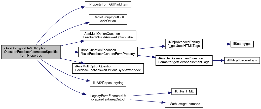 References ilPropertyFormGUI\addItem(), ilRadioGroupInputGUI\addOption(), ilAssMultiOptionQuestionFeedback\buildAnswerOptionLabel(), ilAssQuestionFeedback\buildFeedbackContentFormProperty(), ilAssMultiOptionQuestionFeedback\getAnswerOptionsByAnswerIndex(), ILIAS\Repository\lng(), and ilLegacyFormElementsUtil\prepareTextareaOutput().