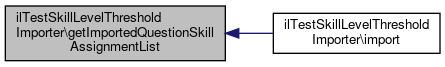 Here is the caller graph for this function:| ilTestSkillLevelThresholdImporter::getImportedQuestionSkillAssignmentList | ( | ) |